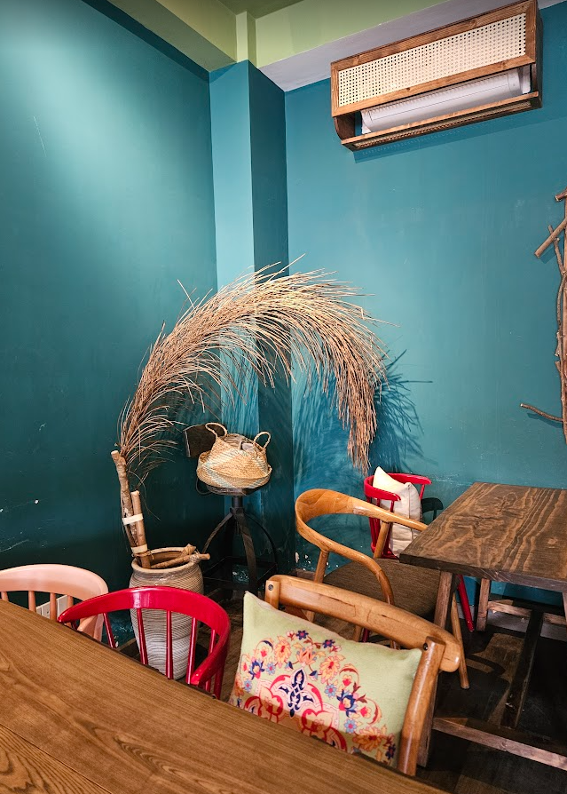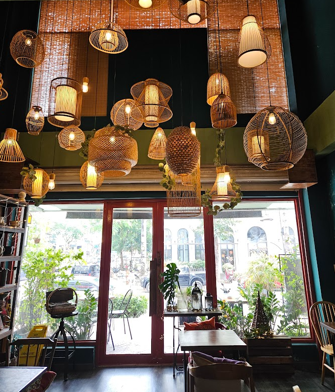 테이블에 앉자마다 천장에 시선이 머물렀다. 잔잔한 음악도 좋았고 화려하진 않지만 손이 많이 간 공예품 들이 정말 아름답고 하나쯤 갖고 싶었다, 동남아 느낌이 물씬나면서 내가 해외에 나와있구나를 많이 느낄 수 있고 평일 오후 1시쯤 참 한적하고 시원했다. 책을 읽기도 좋고 코코넛 음료를 마시기도 좋은 그런 카페이다.